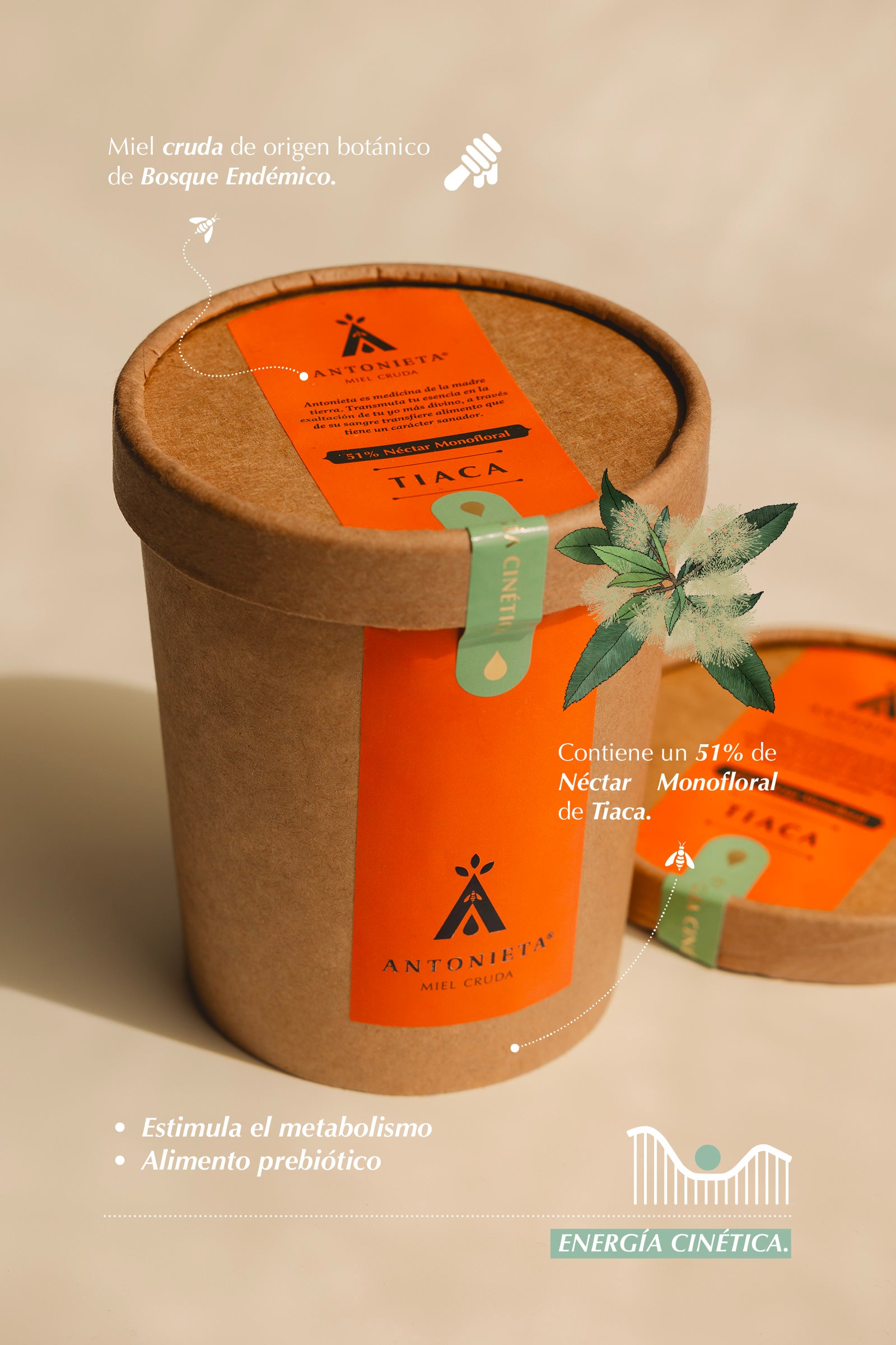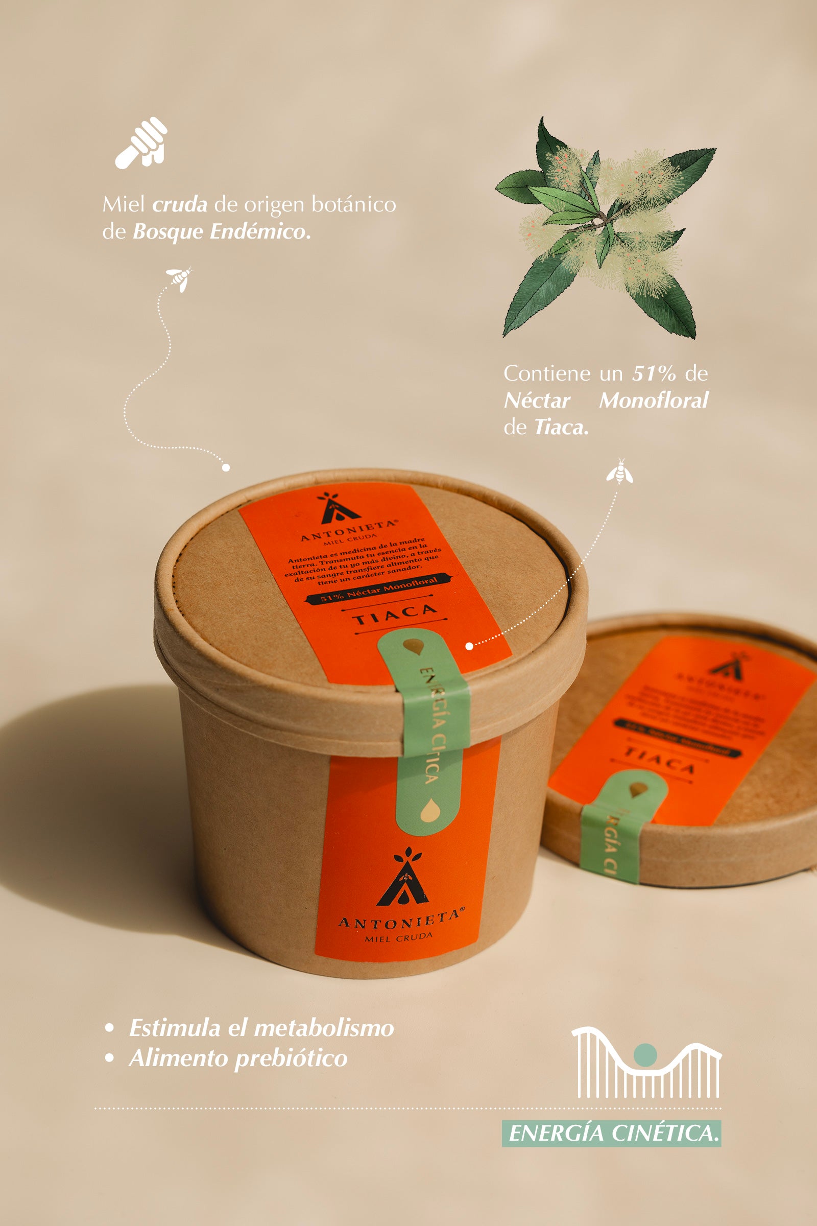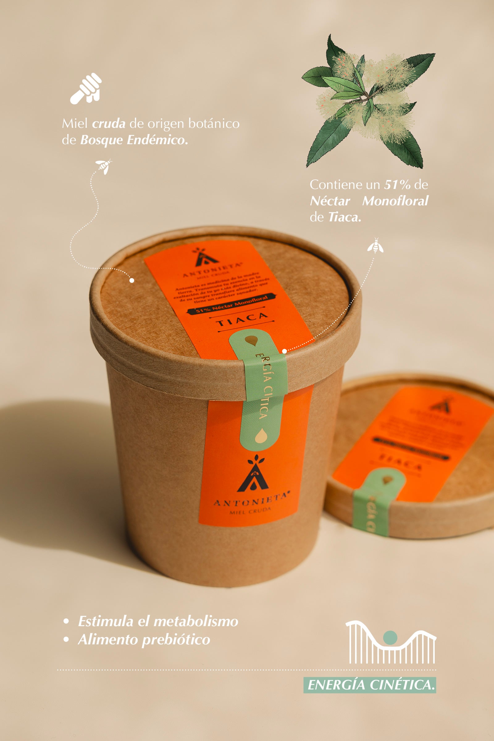 La miel de Tiaca producida en el Cabrito contiene un 51% de néctar mono floral del árbol Tiaca. Se caracteriza por su aroma y dulzor intenso ideal para momentos de deficiencias de glucosa que nos quitan la concentración. La miel de Tiaca es de tonalidad verde claro en su estado líquido como su flor hermafrodita. Su sabor calza muy bien para combinar con alimentos, es preferible reemplazar el azúcar refinada por miel cruda de Tiaca y así enriquecer con nutrientes y prebióticos muy positivos para el bienestar del cuerpo.